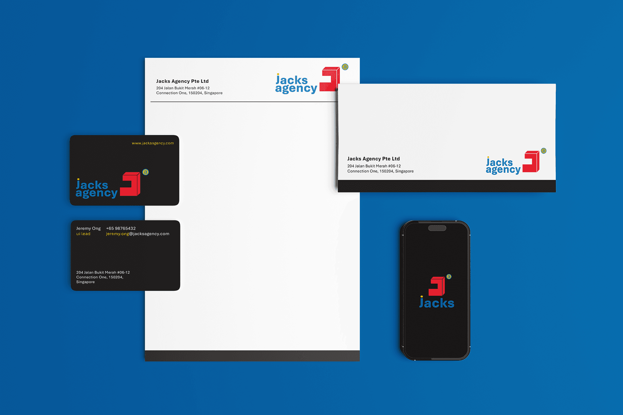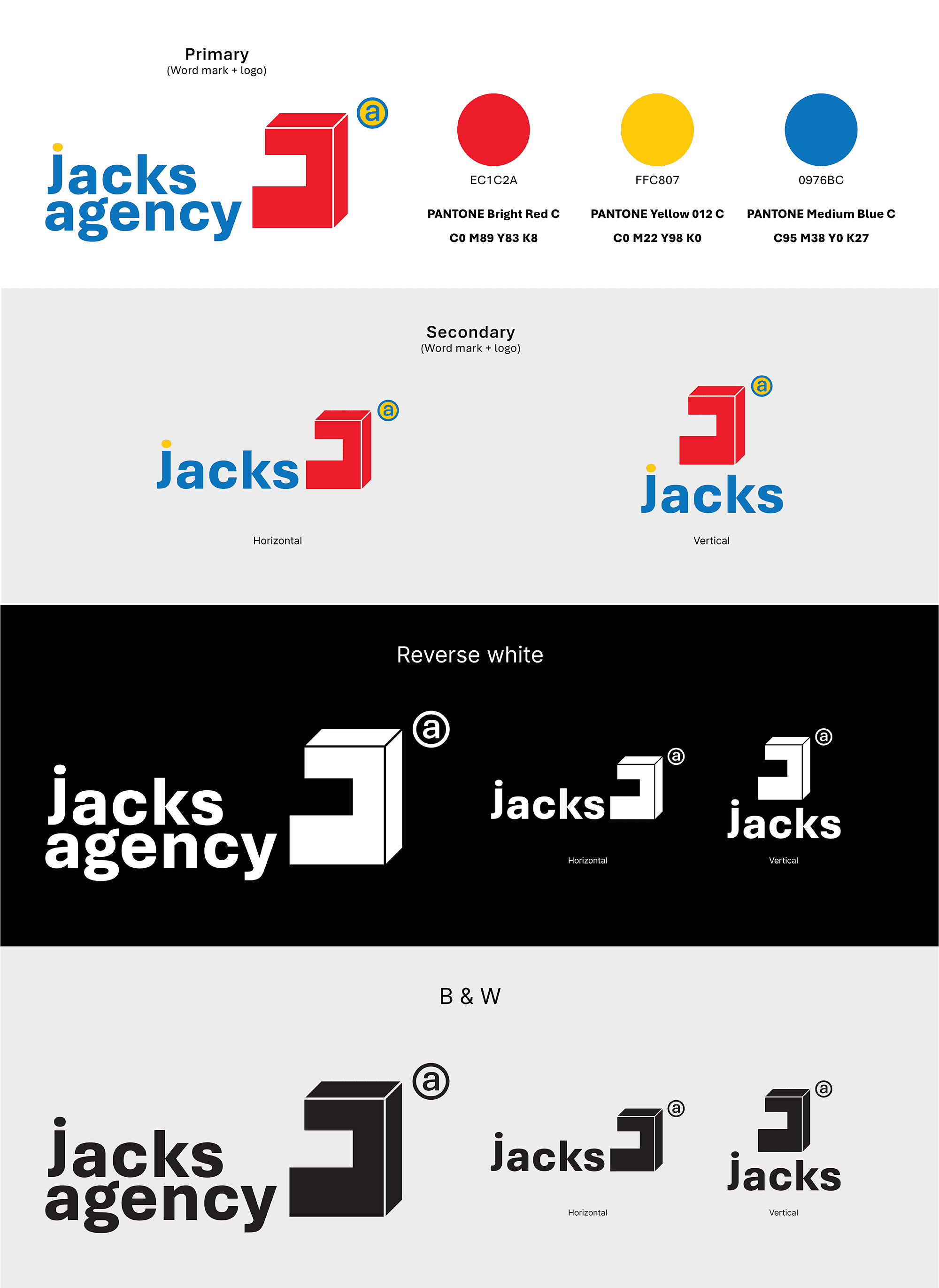 Jacks Agency is a conceptual brand identity created for a modern creative studio, designed to express boldness, clarity, and a playful geometric character.