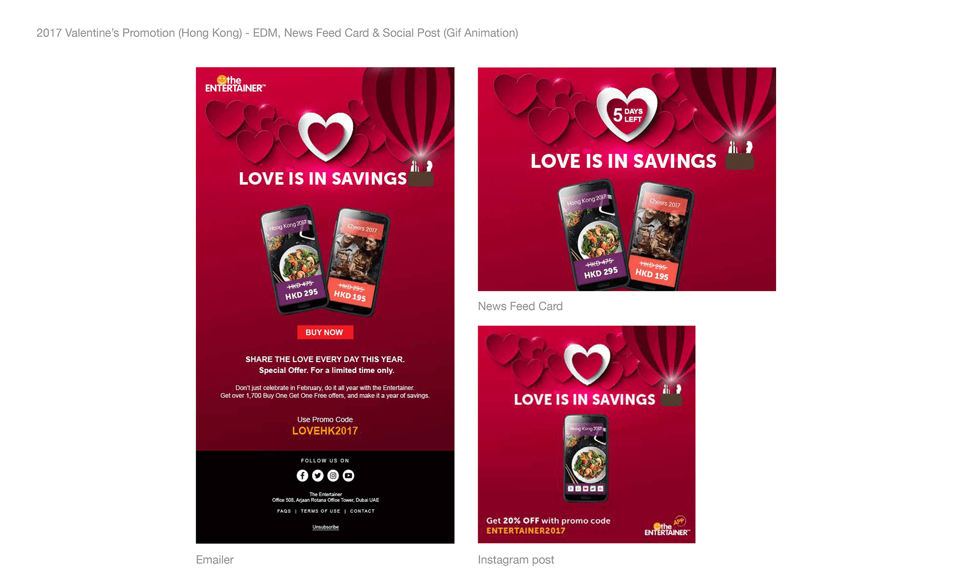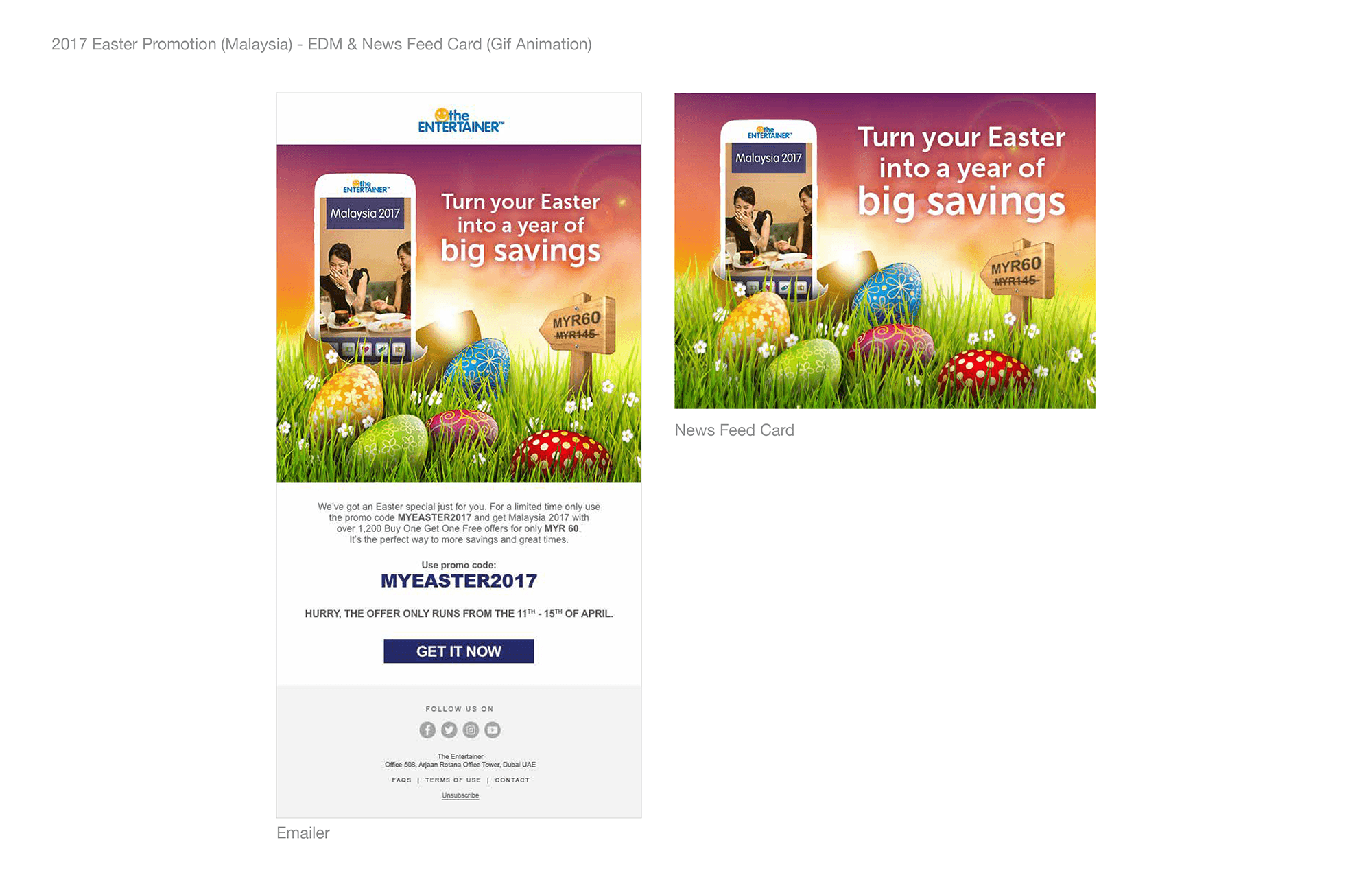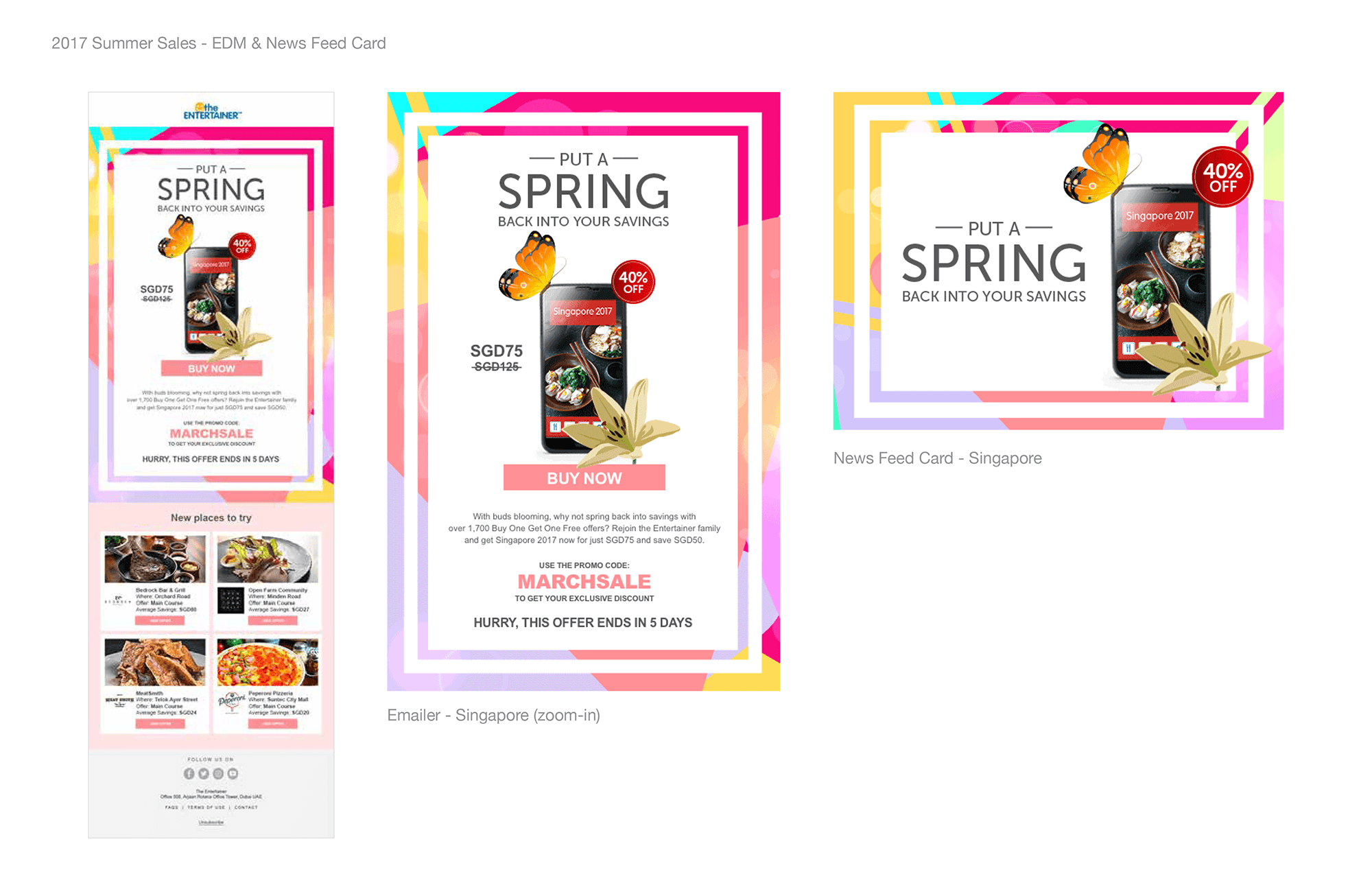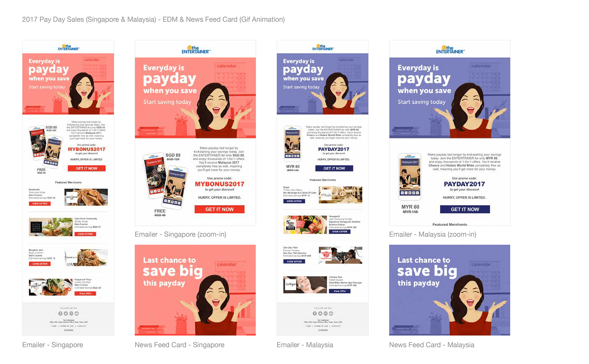 Designing app content and marketing collaterals for The Entertainer’s seasonal and campaign themes.